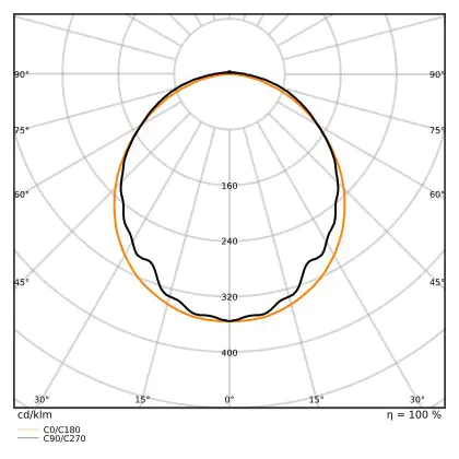 Diese LED-Deckenleuchte punktet mit einer Leuchtkraft von 2.400 lm und strahlt somit einiges an Licht aus. Die ebenfalls hohe Lichtausbeute von 135 lm/W zeugt von einer guten Effizienz. Wenn Sie die Stärke dieses Lichts mit dem Ihrer konventionellen Lichtlösung vergleichen möchten, empfehlen wir Ihnen einen Blick in unsere praktische Tabelle Lumen in Watt umrechnen.