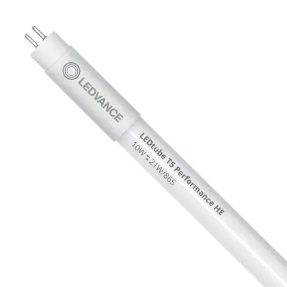 Die Ledvance LED Röhre T5 Performance (Mains AC) High Efficiency 10W 1500lm - 865 Tageslichtweiß | 85cm - Ersatz für 21W ist eine effiziente LED-Röhre und der perfekte Ersatz für Ihre konventionelle Leuchtstoffröhre mit 21W und einem G5. Die Röhre hat eine Länge von 849 mm und einen Durchmesser von 19 mm. Zudem strahlt das Produkt Licht in der Farbtemperatur 6500K - Tageslichtweiß aus und punktet durch eine lange Lebensdauer.
