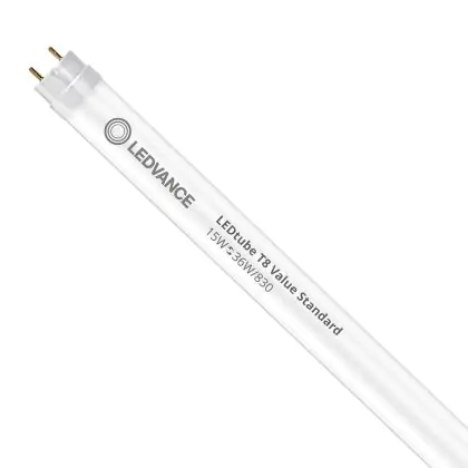 Die T8 LED-Röhren von Ledvance gibt es in verschiedenen Farbtemperaturen: Extra Warmweiß (2.700 K und weniger), Warmweiß (3.000 K), Kaltweiß (4.000 K) und Tageslichtweiß (6.500 K). Diese Röhre strahlt ihr Licht in 3000K - Warmweiß aus.