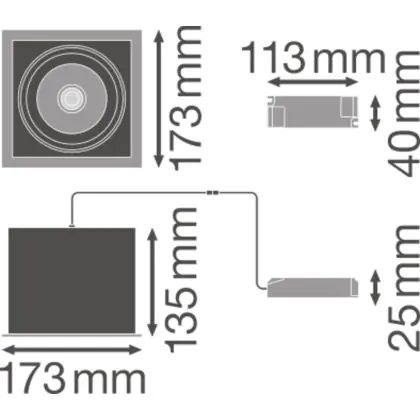 Beschreibung Ledvance LED-Spot Quadrat schwenkbar Schwarz-Weiß 30W 2700lm 36D - 830 Warmweiß | Ausschnitt 164mm