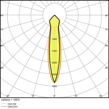 Der LED-Strahler verbraucht im Vergleich zu herkömmlichen Halogenstrahlern wenig Energie. Der Verbrauch schlägt mit nur 35 Watt zu Buche. Die Lichtausbeute, also das Verhältnis zwischen Stromverbrauch und Helligkeit, liegt bei 95 lm/W. Damit arbeitet die Lampe besonders effizient und kostensparend.